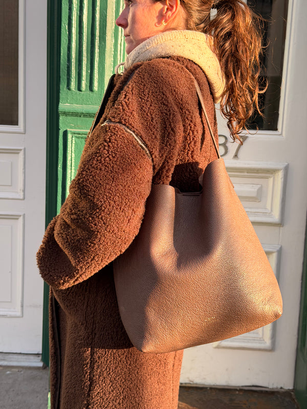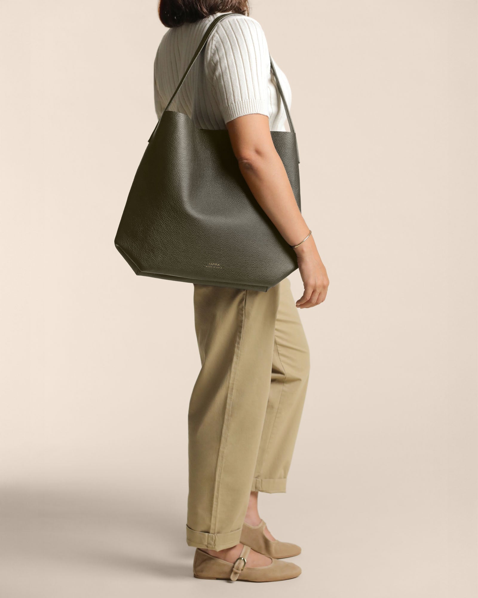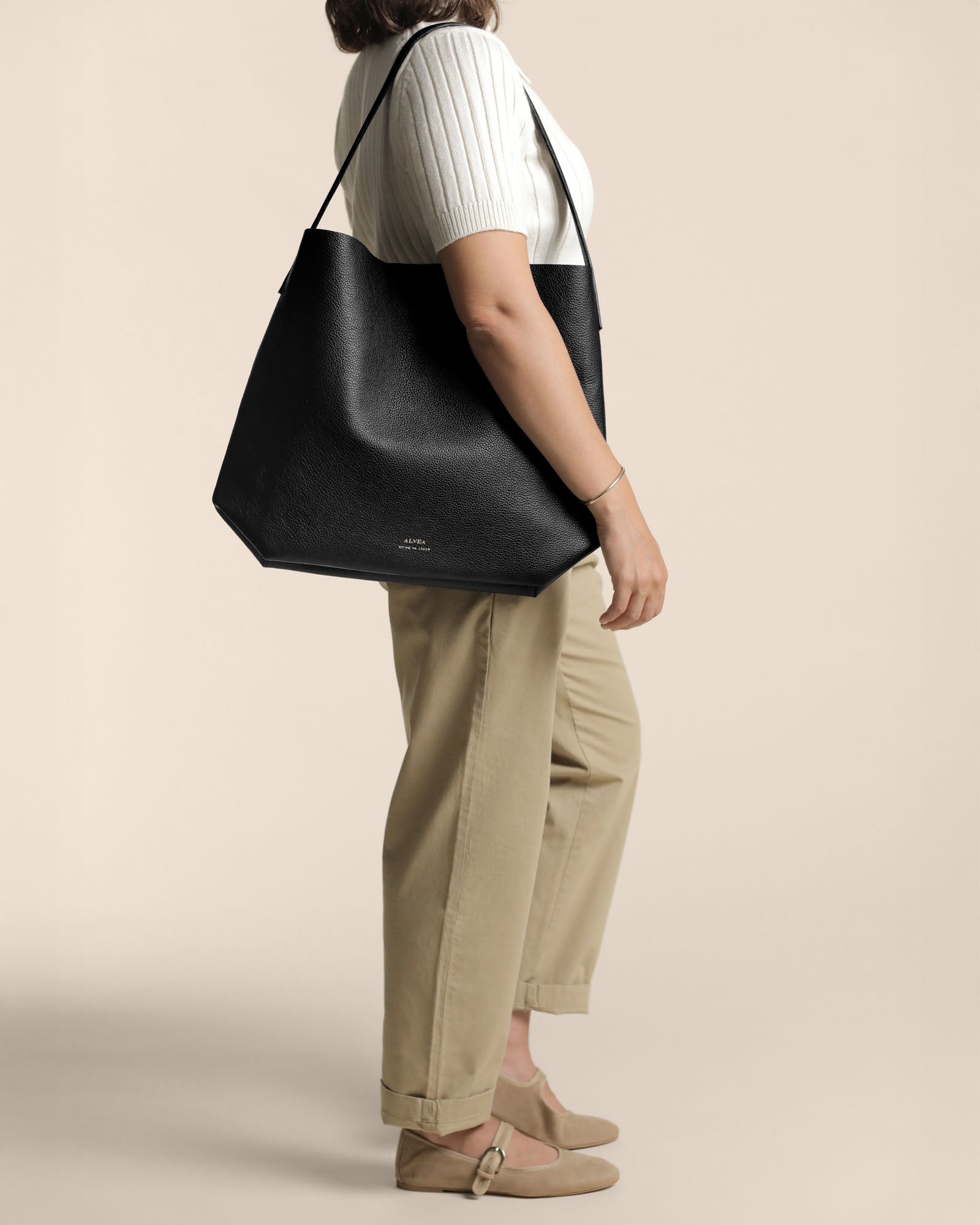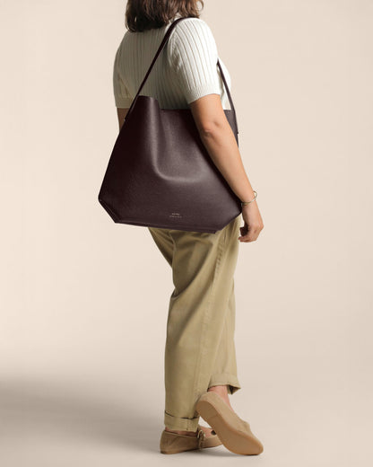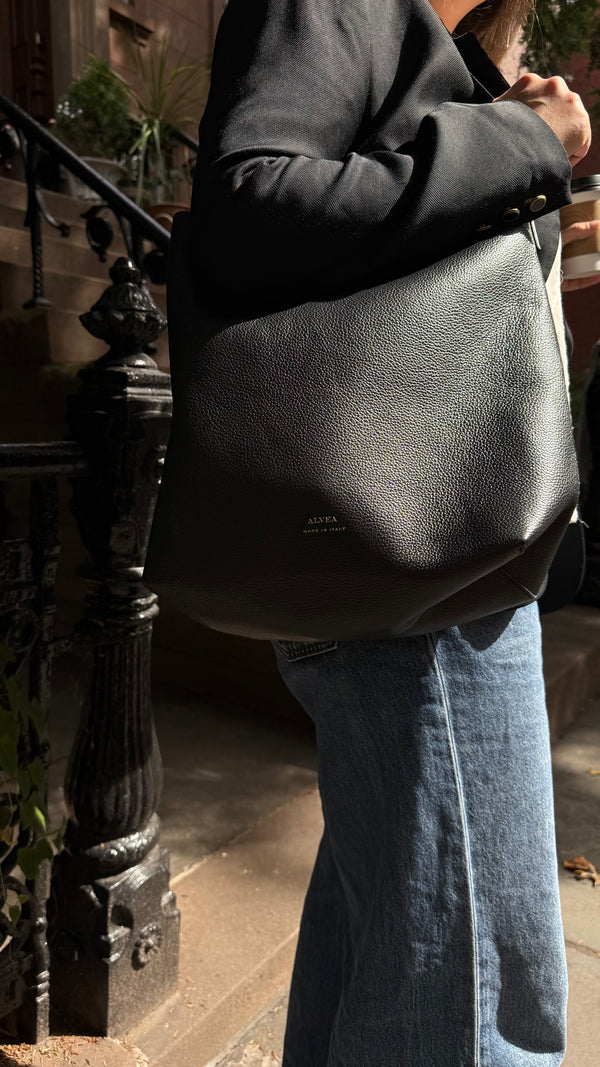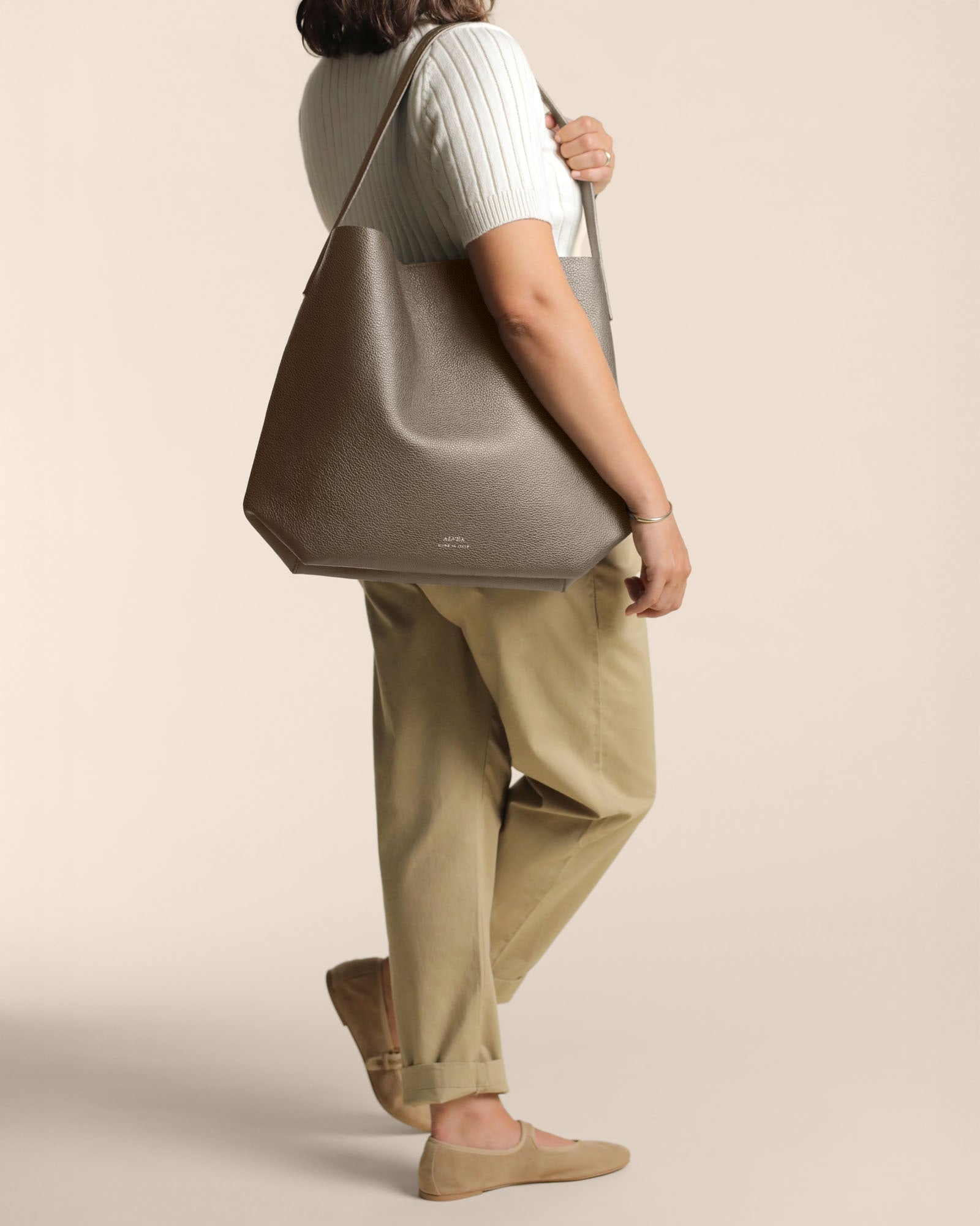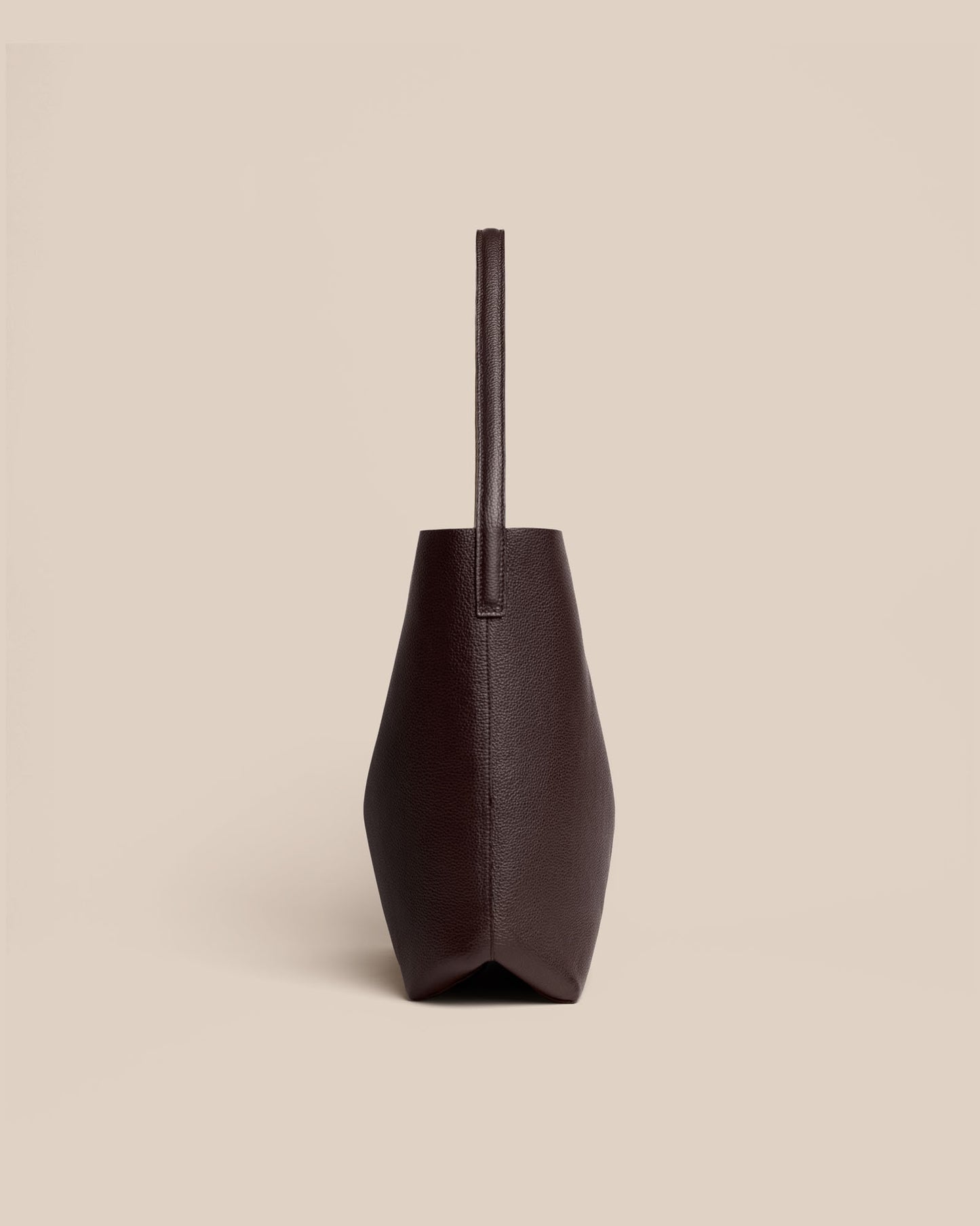 Sculptural. Spacious. Sophisticated. A modern reimagining of a classic silhouette, the Everyday Bucket Bag is handcrafted in Italy from LWG Gold-certified tumbled bovine leather. Featuring a luxurious suede interior and a secure magnetic closure, it provides a spacious, open-concept design for those who require high-capacity utility without sacrificing a refined, architectural shape. Its circular base and tall walls offer surprising volume that carries you from a morning workout to a professional meeting, while the resilient bovine hide resists sagging and scuffing to remain polished for years.