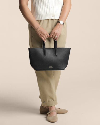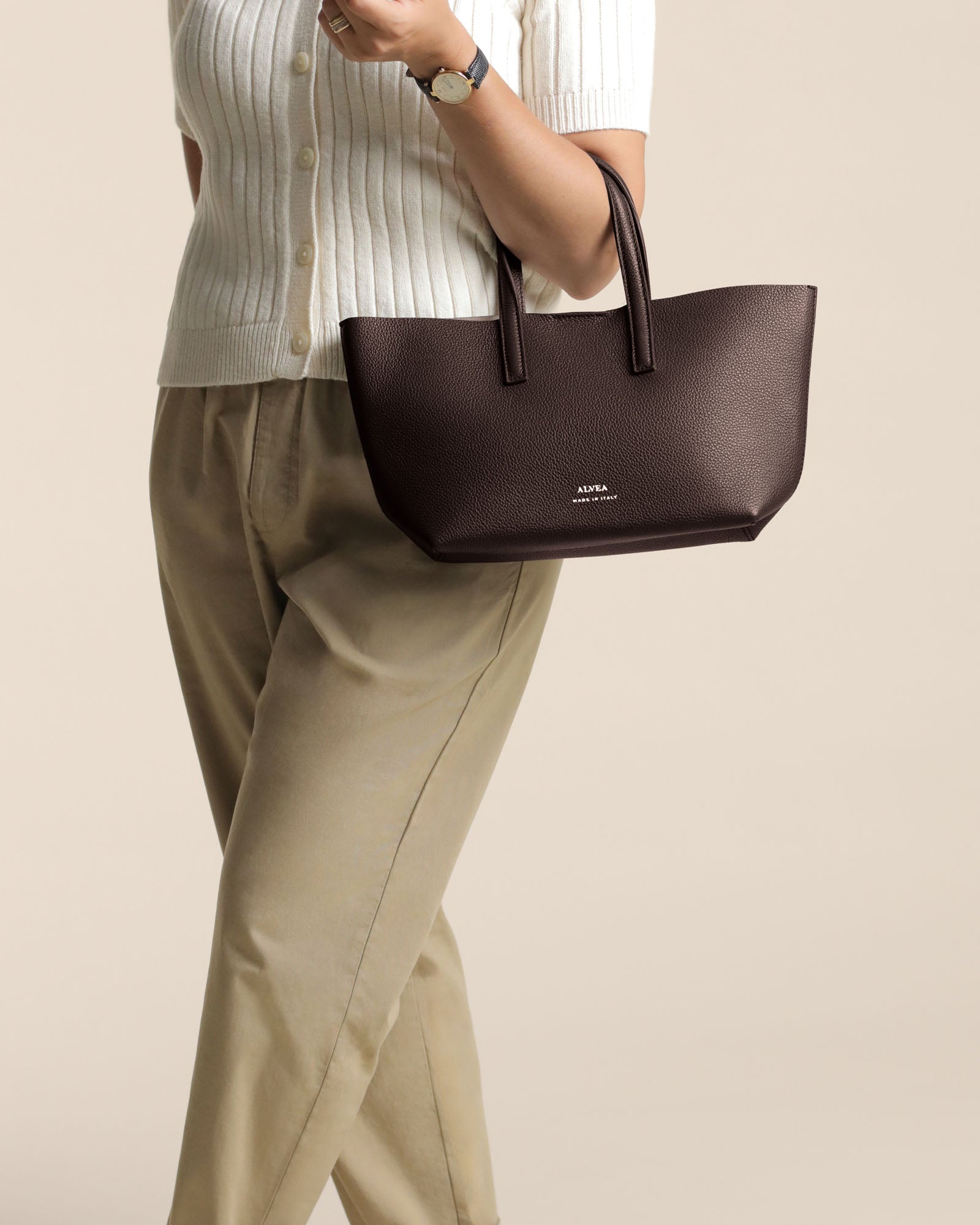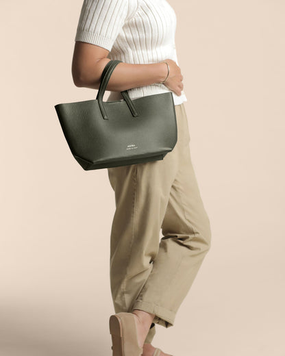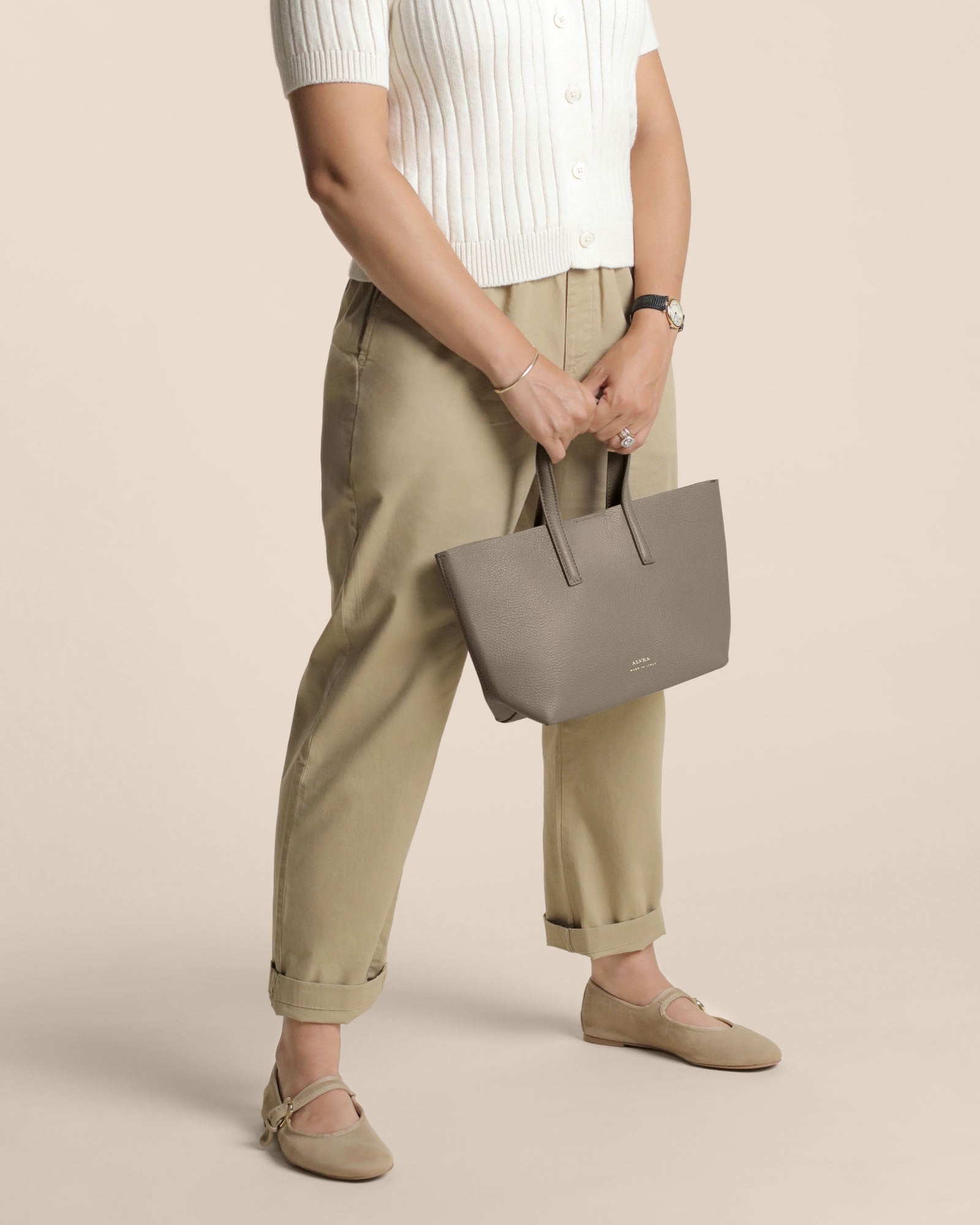 Our everyday mini tote is a more compact form of our classic tote, made for the rhythm of everyday life — perfect for lighter days and fewer things. Handcrafted in Italy from supple pebbled leather, it carries your every day essentials from short errands to spontaneous evenings. A smaller staple made for everyday rhythm.